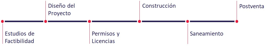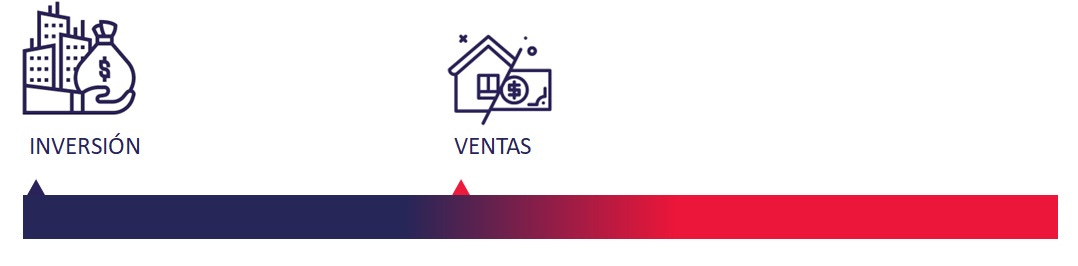 Como todo proyecto, un desarrollo inmobiliario nace de un análisis siendo la materia prima principal el terreno. Desde el instante en el que se inicia la evaluación de la cartera disponible de terrenos se inicia la inversión en el mismo y no es hasta que se llega al punto de equilibrio en ventas - y muchas veces incluso más allá por las retenciones bancarias - que recién se ven los retornos del proyecto.